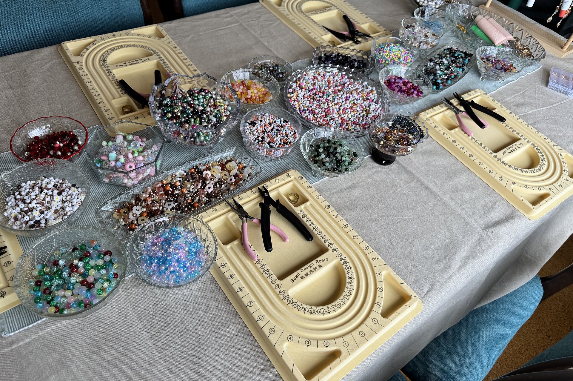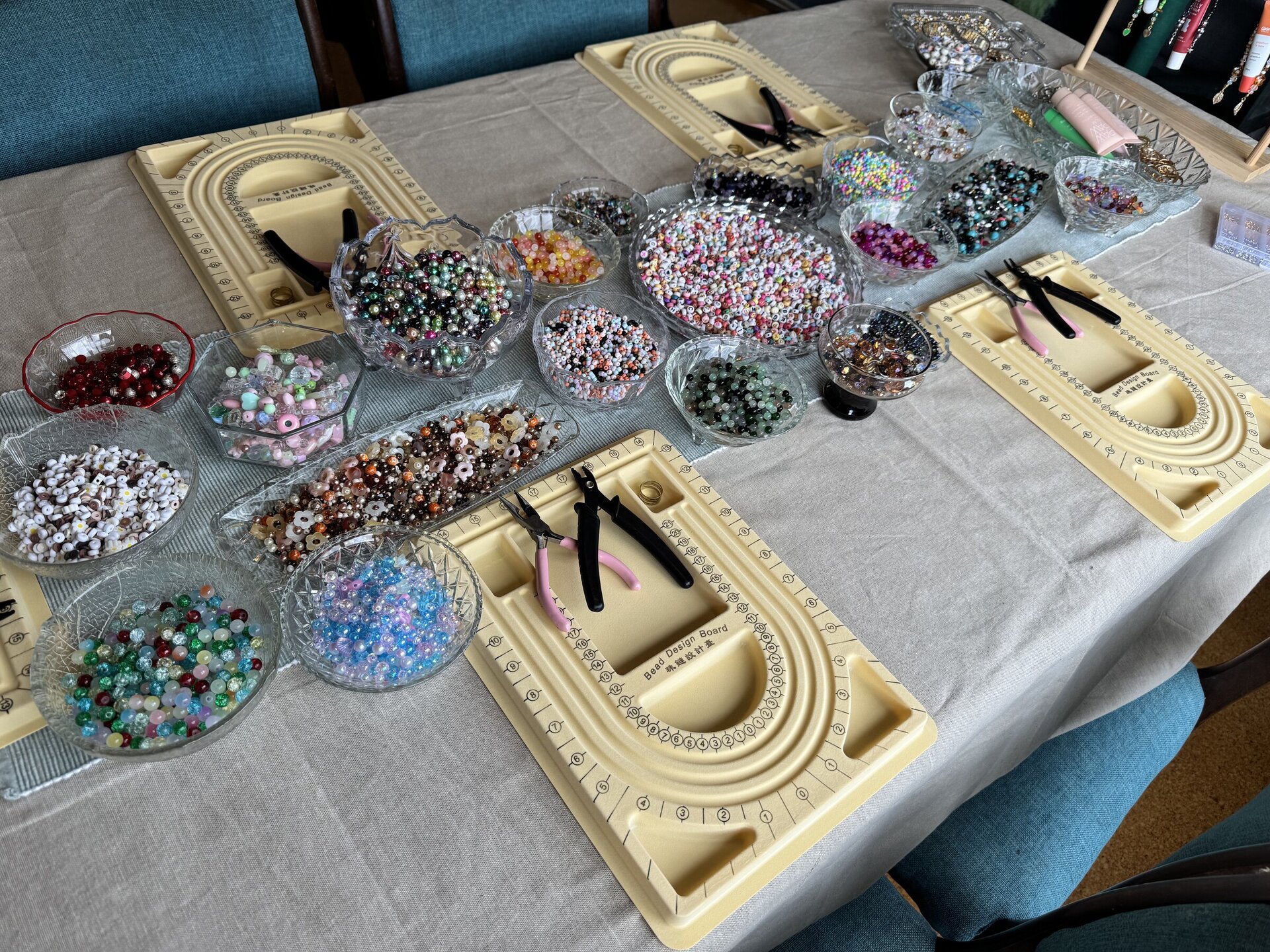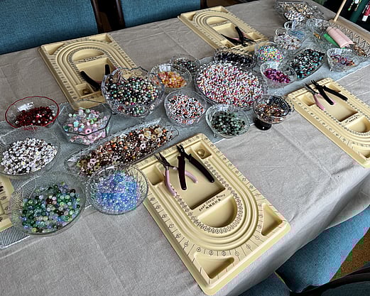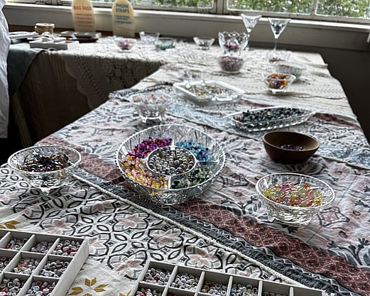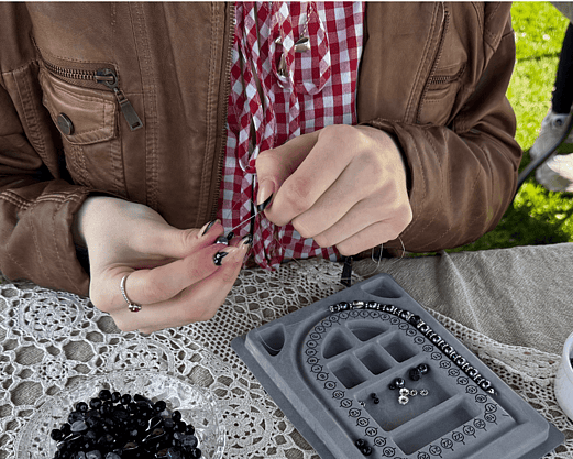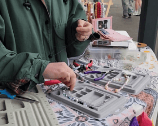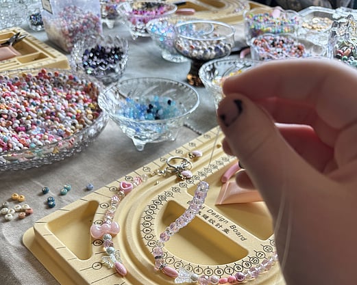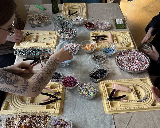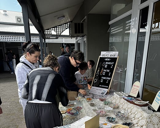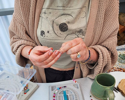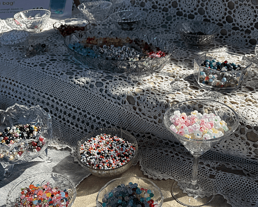 I bring everything you need; beads, charms, findings, tools, and plenty of creative guidance - so crafters can relax and enjoy designing your own pieces. No experience needed, just good vibes and a bit of colour!